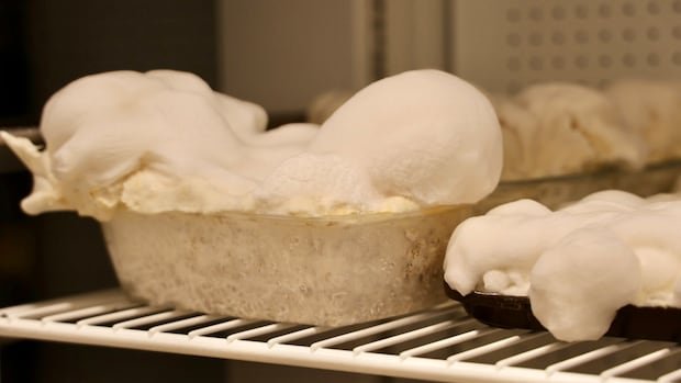 Deep in a dim cultivation chamber at Acadia University’s research lab, a unique white substance emerges from an industrial tray, resembling meringue or snow. This peculiar living organism is mycelium, the root structure of a mushroom. Collaborating with an entrepreneur, researchers at Acadia are working on a process to utilize mycelium for producing a high-protein powder for the commercial food sector.